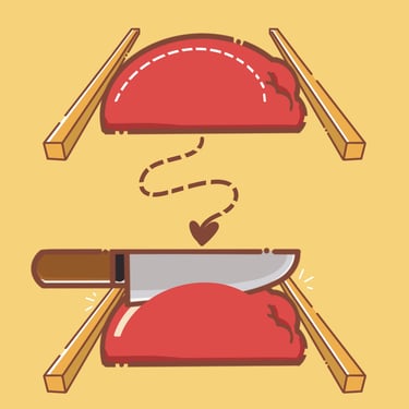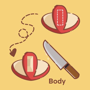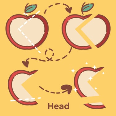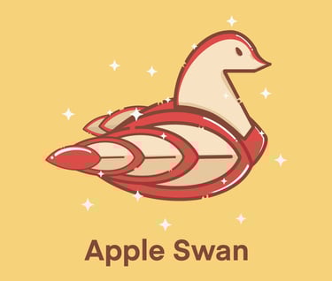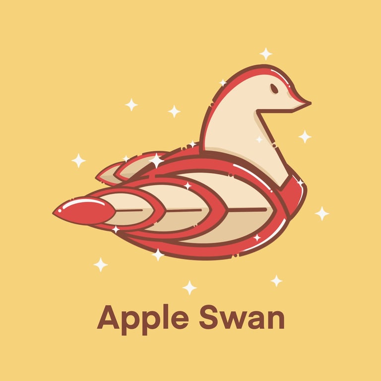 A web design graphic tutorial, illustrating step-by-step how to cut an Apple into an artistic shape of a Swan.