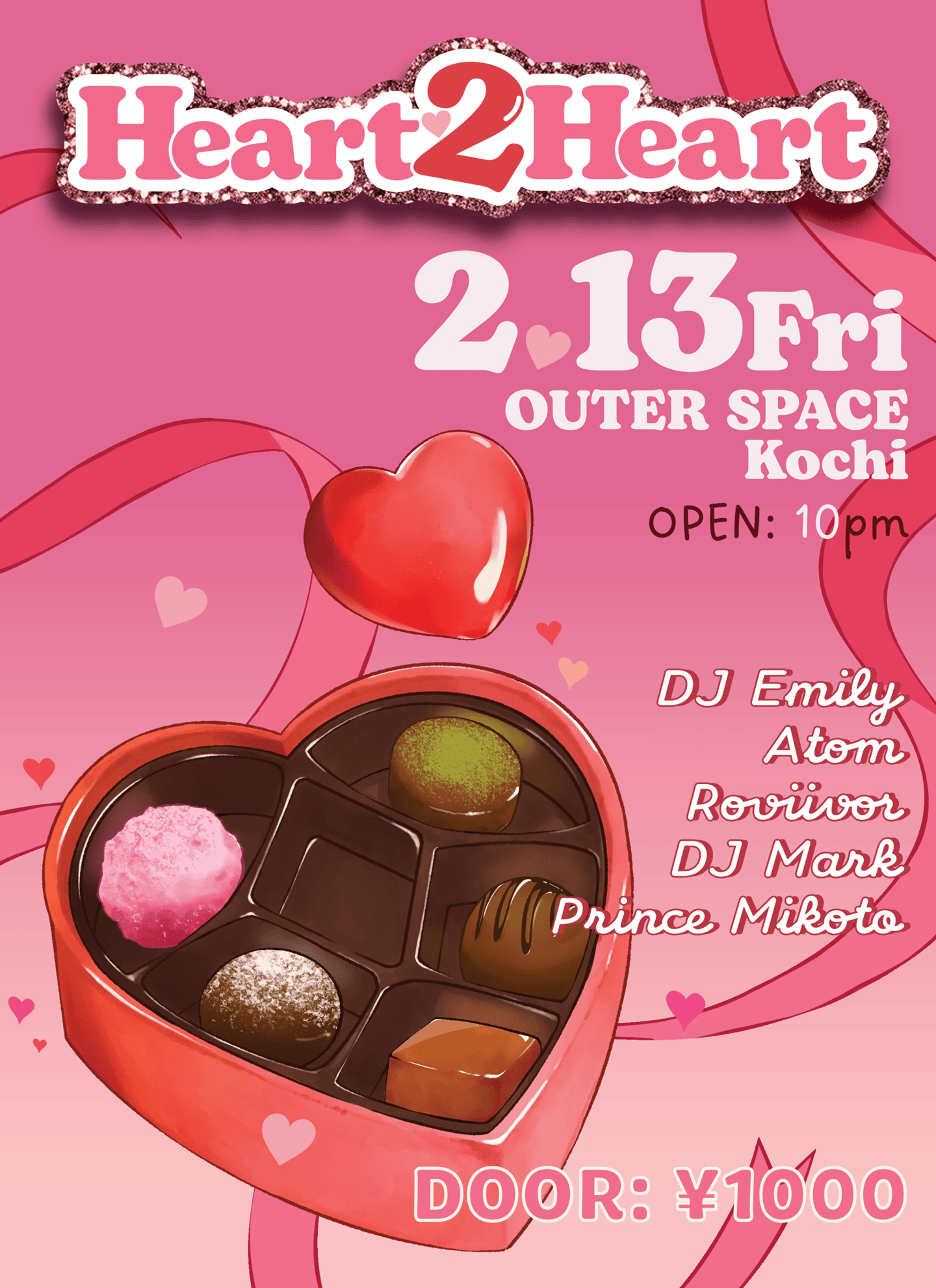 Commissioned flyer to promote a Valentine-themed DJ set event held in Kochi, Japan.